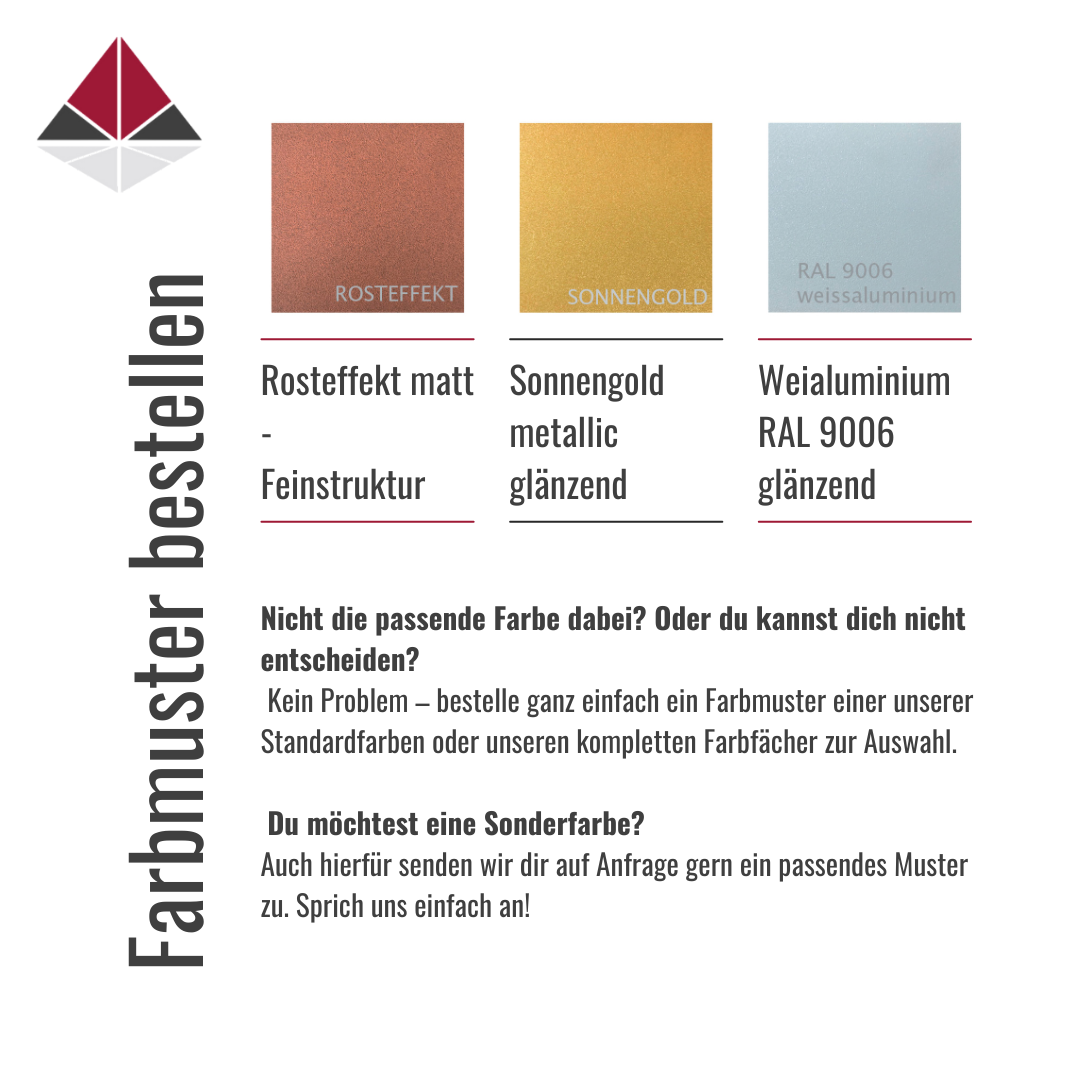 → Natürlich – hier Farbmuster anfragen oder uns direkt kontaktieren.